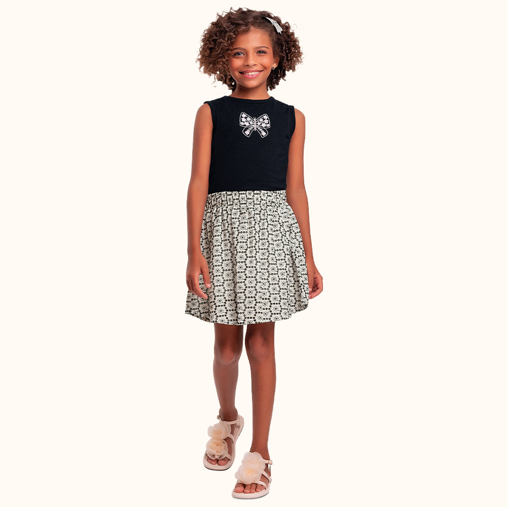 Conjunto Saia de Tecido Bordado com Short Interno e Regata Estampa Frontal 100% Algodão