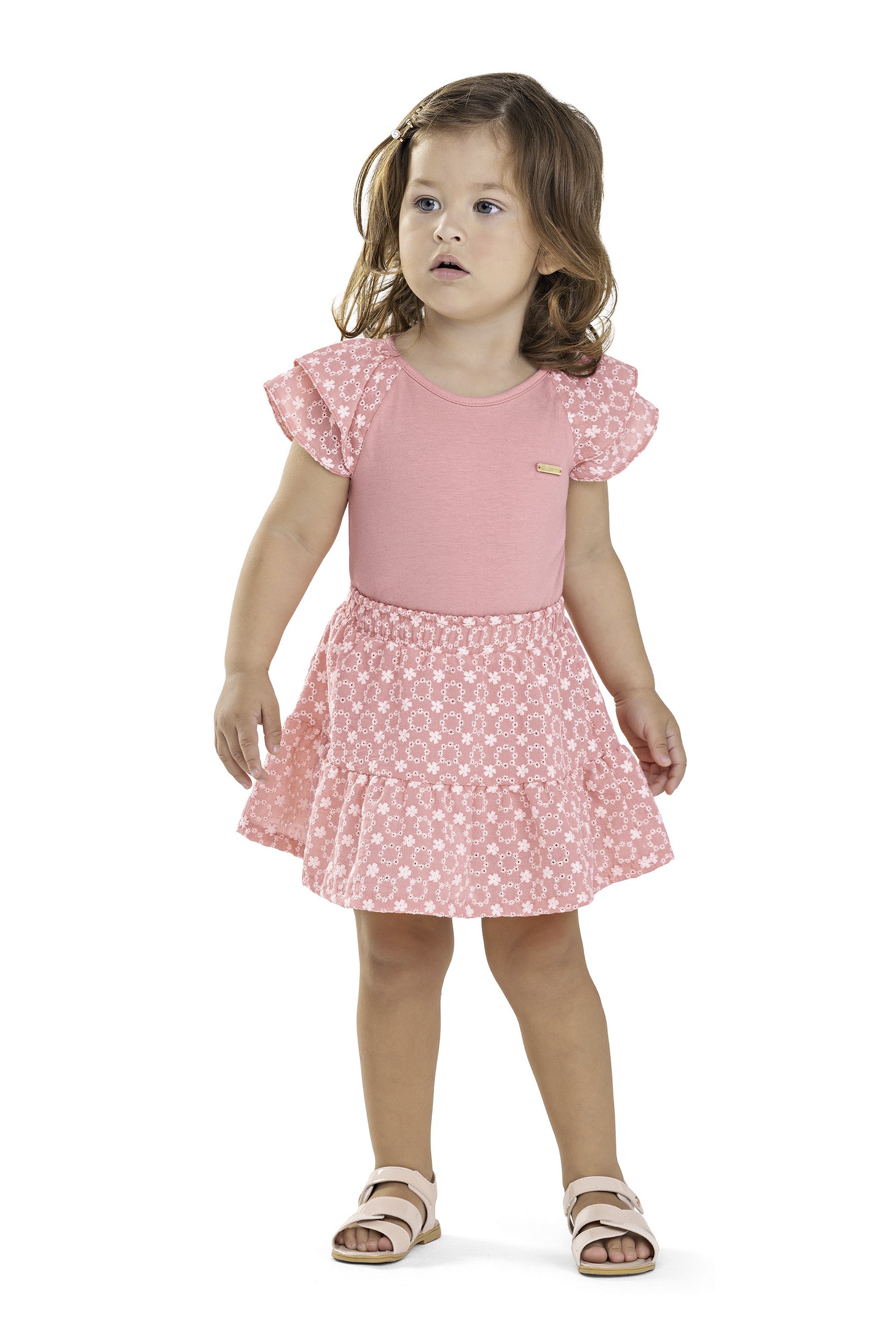 Conjunto Saia de tecido com Short Interno e Blusa 100% Algodão