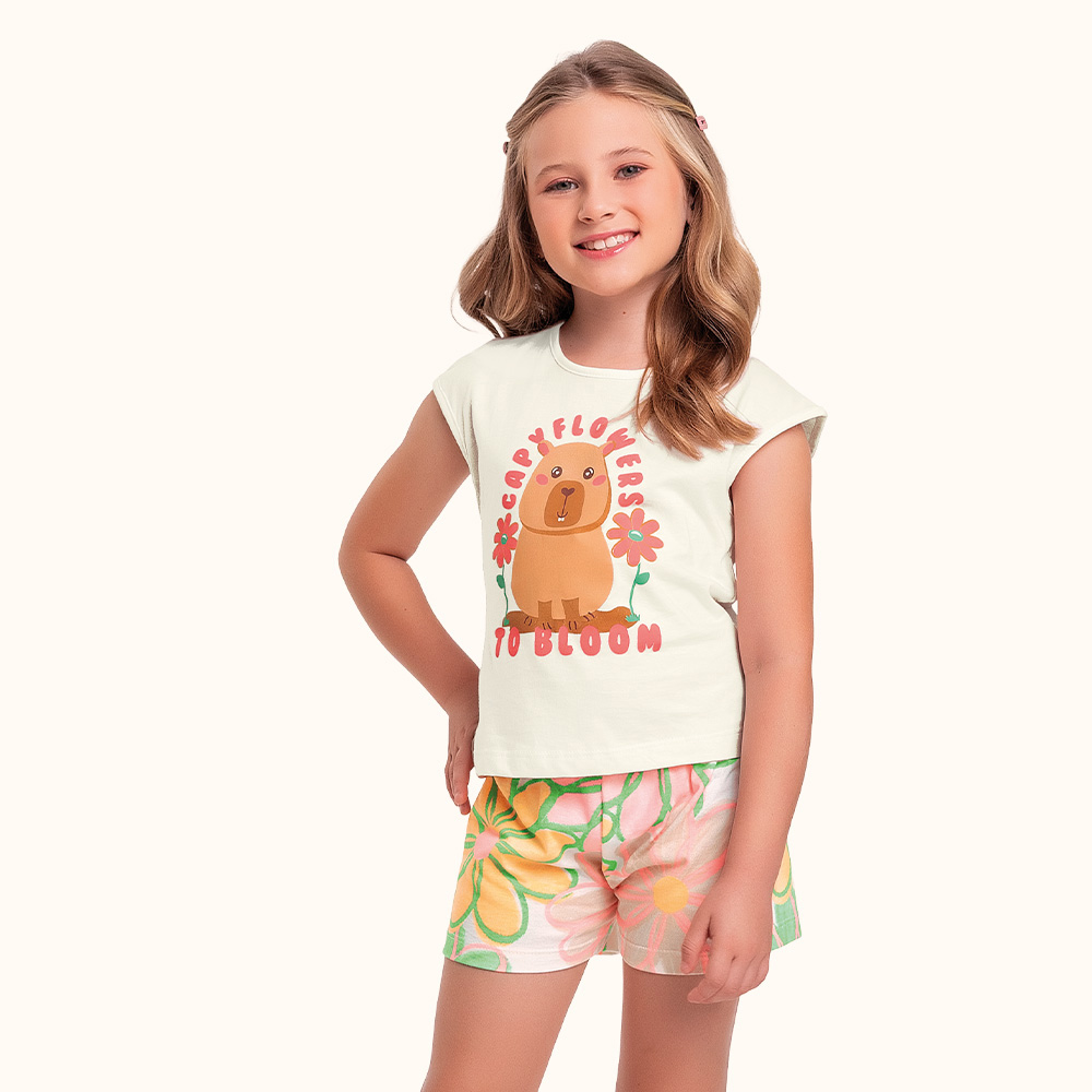 Conjunto Short Estampado e Regata com Estampa Frontal 100% Algodão