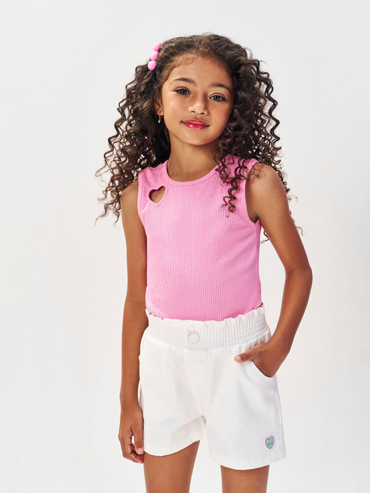 Regata Canelada 100% Algodão com Aplicação de Brilhos