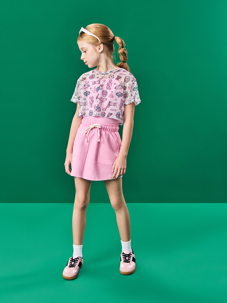 Trijunto Regata e Short Saia com Bolsos 100% Algodão e Terceira Peça Tela em Malha Estampada