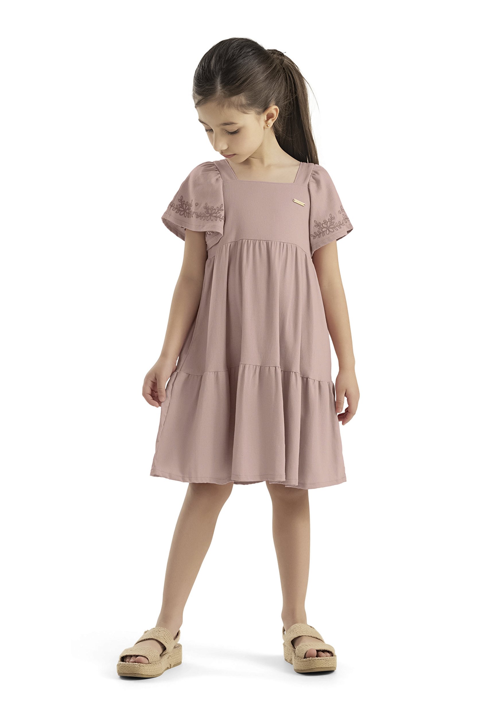 Vestido de Linho com Bordado nas Mangas